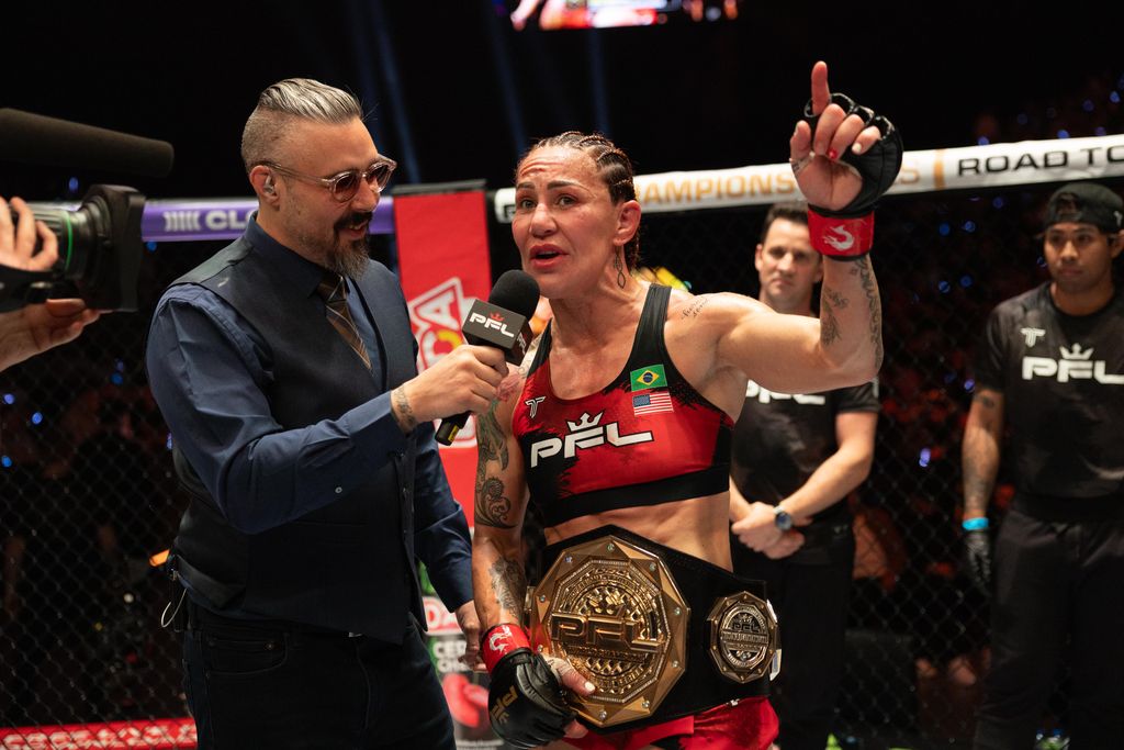 联合主赛是PFL女子羽量级冠军争霸赛,前UFC和Bellator女子羽量级冠军“机械婆”克里斯蒂安·贾斯蒂诺(Cristiane Justino)(29-2, 21 K, 2 S, 1 N)对阵澳大利亚不败女将萨拉·柯林斯(Sara Collins)(6-1, 0 K , 3 S),贾斯蒂诺在第三回合2分55秒背后裸绞降服获胜夺得PFL女子羽量级金腰带。