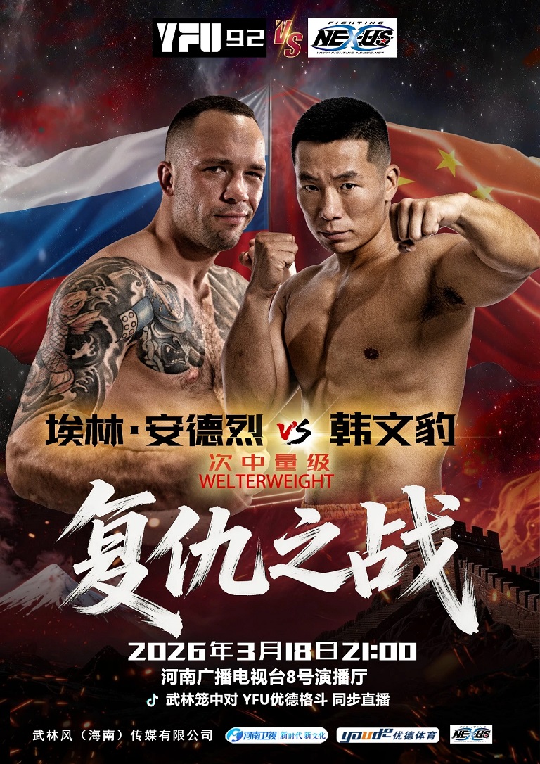 武者网讯 将于3月18日在河南郑州举行的YFU武林笼中对92期比赛,官方公布了四场对阵名单。