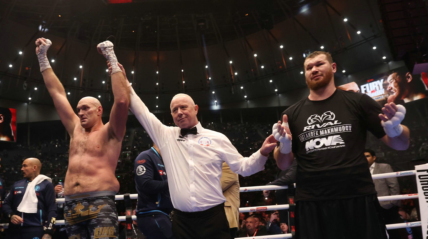 武者网讯 当地时间4月11日,在英国伦敦举行的一场十二回合重量级拳击比赛上,本土明星前重量级世界冠军泰森·富里(Tyson Fury)对阵俄罗斯悍将阿斯兰贝克·马克穆多夫(Arslanbek Makhmudov),双方打满十二回合最终富里一致判定获胜。
